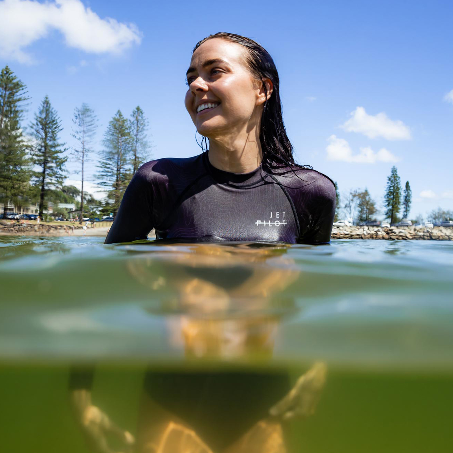 Гидрокостюм лайкра женский без ног длинный рукав Jetpilot Allure Lycras Swimsuit (black)
